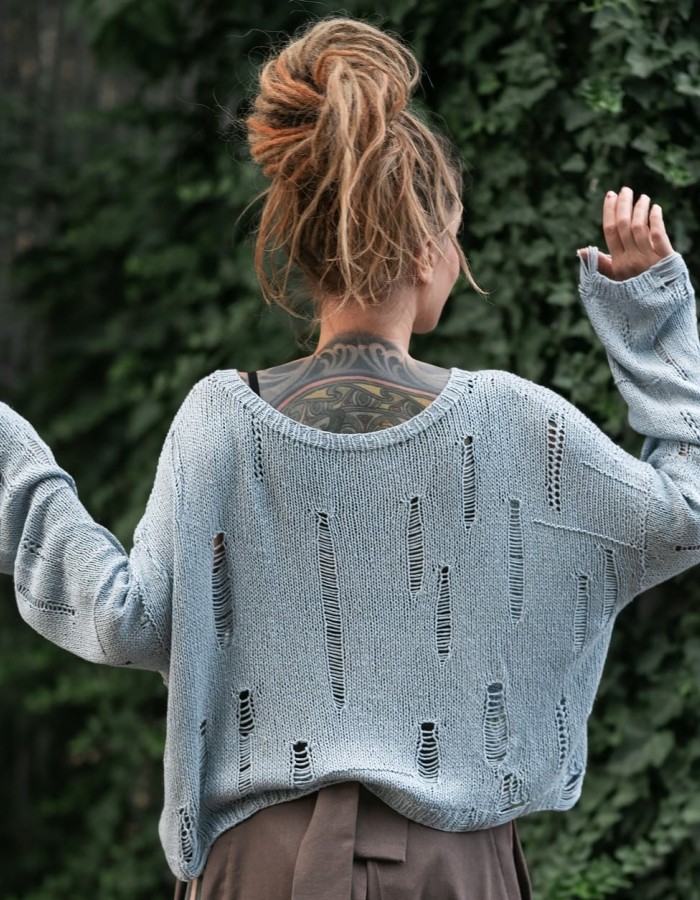 - Джемперы с рваным узором: Джемперы с рваным узором добавляют нотку дерзости и оригинальности в любой наряд. Они отлично сочетаются с джинсами и юбками.
